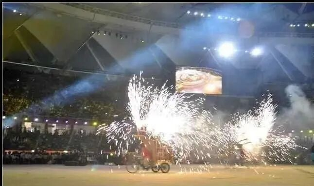 在揭幕式表演中,一辆三轮车竟然稀里糊涂地开进会场……然后,发现走错了,又开走,那时不雅众们还觉得这是别开生面的节目。
