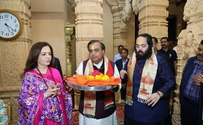 1月3日,他带着老婆妮塔·安巴尼和儿子达到索姆纳特寺拜林伽。林伽就是丁丁,他儿子体重300多斤,健康堪忧,成婚两年多,妻子一向没怀上。去请湿婆帮个忙,也是有科学事理的。